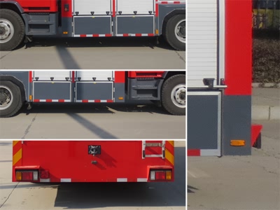 JDF5153GXFSG60型水罐消防车,采用庆铃汽车股份有限公司QL1160VMFRY底盘改装而成。整车由消防员乘员室和车身两大部分组成,乘员室为单排改双排,可乘坐3+3人,该车为内藏罐结构,车身前部为器材箱,中部为水罐,后部为泵房。载液罐体为优质碳钢,与底盘采用弹性连接,载水5860kg,装备了上海消防设备有限公司生产CB10/40型常压消防泵,额定流量40L/S,车顶安装成都威斯特消防机械有限公司生产的PS40W型车用消防炮。该车最大的特点是载液量大、操控性好、维修简便。可广泛应用于公安消防队、厂矿企业及社区、码头等场所,扑救大型油类火灾或一般物质火灾。